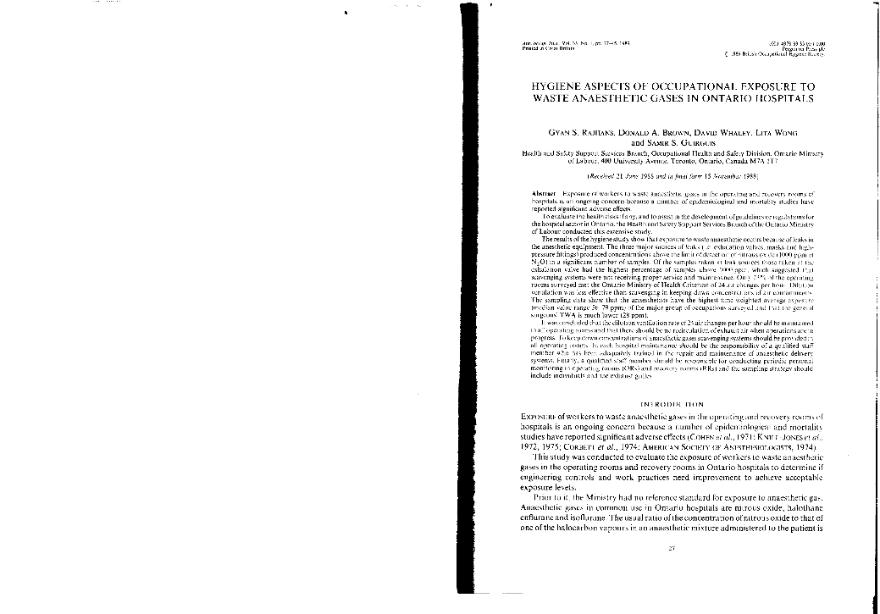 Hygiene aspects of occupational exposure to waste anaesthetic gases in Ontario hospitals