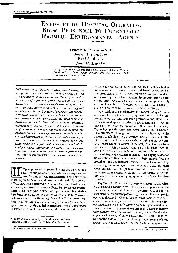 Exposure of hospital operating room personnel to potentially harmful environmental agents