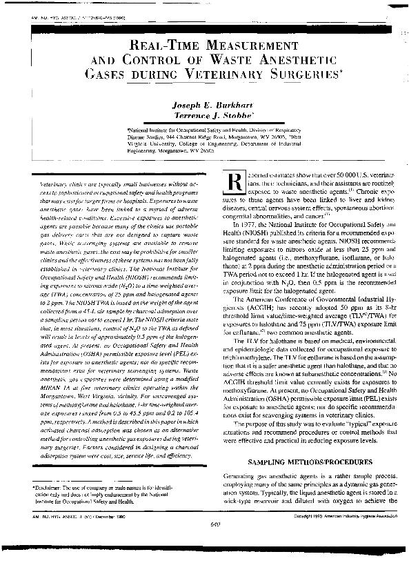 En: American Industrial Hygiene Association journal. - Akron, Ohio. - Vol. 51, nº 12, December 1990 ; p. 640-645