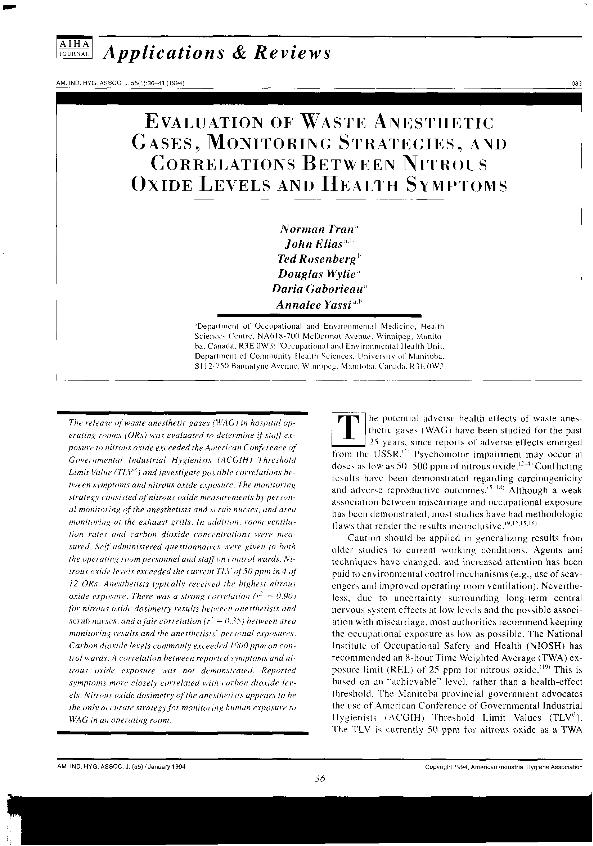 Evaluation of waste anesthetic gases, monitoring strategies, and correlations between nitrous...