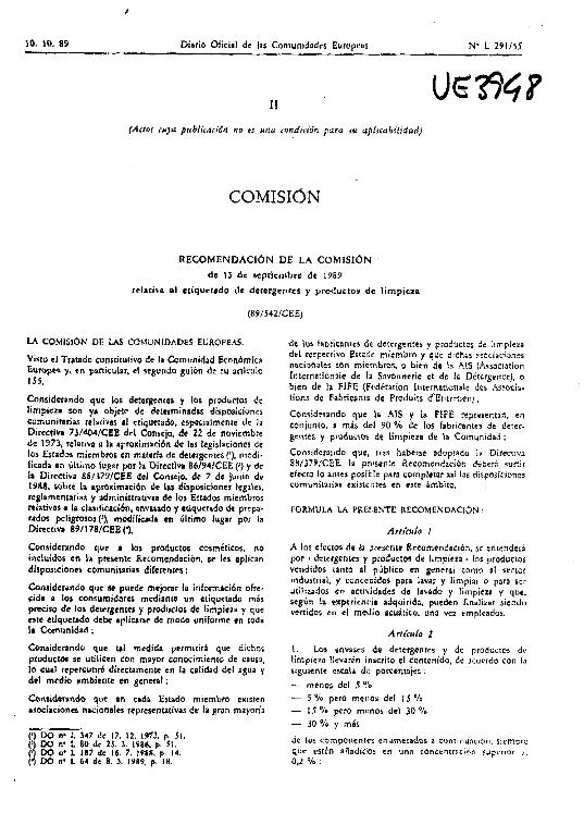 - En: . - D.O.C.E. núm L 291, de 10 de octubre de 1989