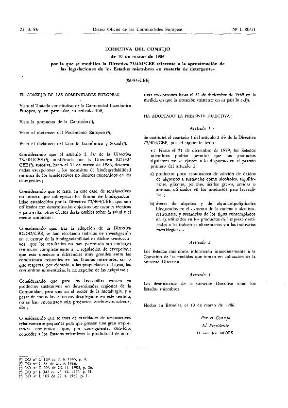 - En: . - D.O.C.E. núm. L 80, de 25 marzo 1986