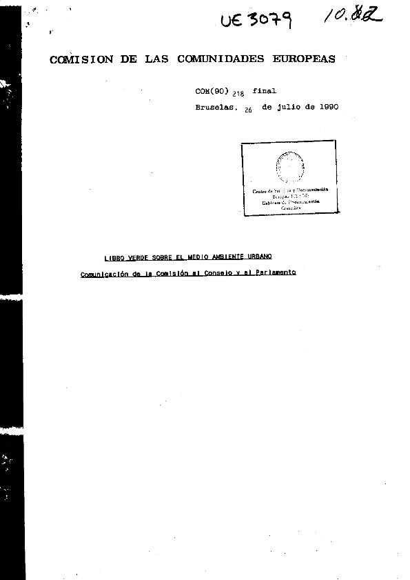 Libro Verde sobre el medio ambiente urbano. Comunicación de la Comisión al Consejo y al Parlamento.
