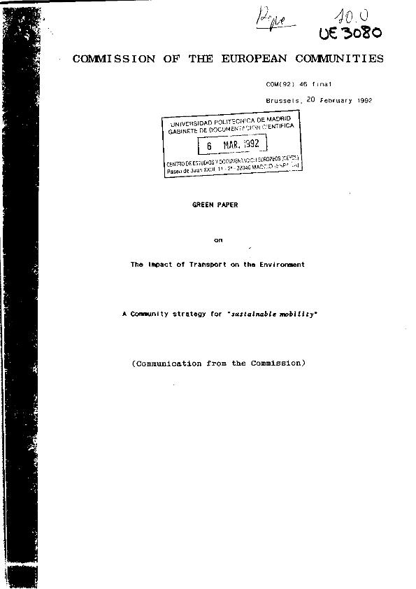 Green paper on the impact of transport on the environment, a Community strategy for "sustainable...