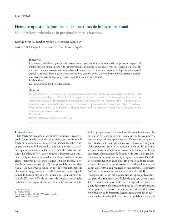 - En: Trauma : (fusión de la revista MAPFRE Medicina y la revista Patología del Aparato Locomotor). - Madrid : FUNDACION MAPFRE, Instituto de Prevención, Salud y Medio Ambiente, 2008-2015 = ISSN 1888-6116. - 01/10/2012 Volumen 23 Número 4 - octubre 2012 , p. 218-222