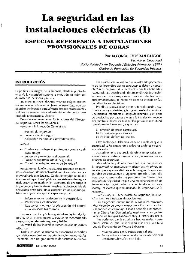 La Seguridad en las instalaciones eléctricas (I) : especial referencia a instalaciones...