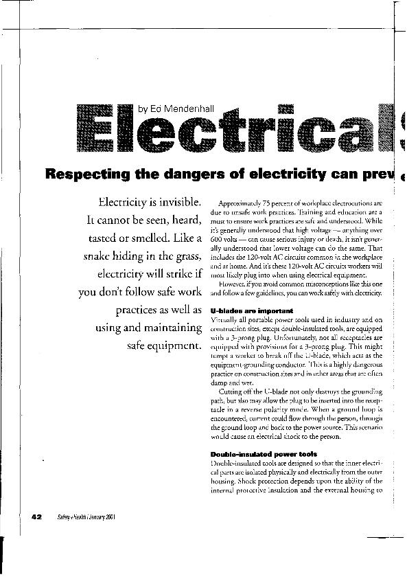 Electrical safety 101 : respecting the dangers of electricity can prevent you from getting the...