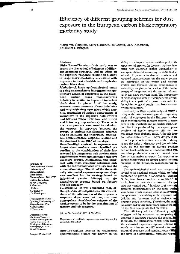 Efficiency of different grouping schemes for dust exposure in the European carbon black...