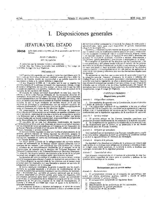 Ley Orgánica 13/1991, de 20 de diciembre, sobre Servicio Militar