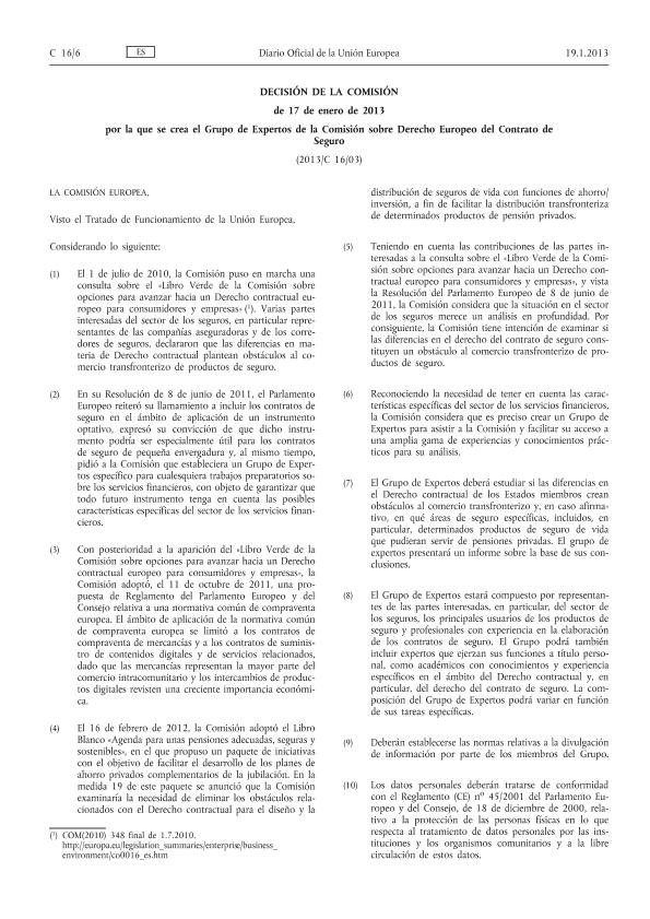 Decisión de la Comisión, de 17 de enero de 2013, por la que se crea el Grupo de Expertos de la...