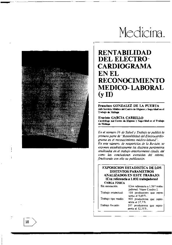 Rentabilidad del electrocardiograma en el reconocimiento médico-laboral (II)