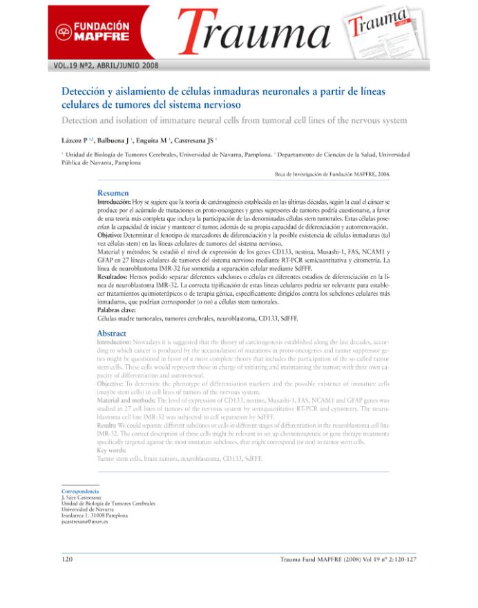 Detección y aislamiento de células inmaduras neuronales a partir de líneas celulares de tumores...