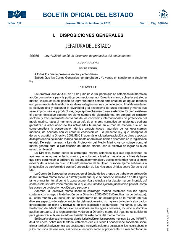 Ley 41/2010, de 29 de diciembre, de protección del medio marino