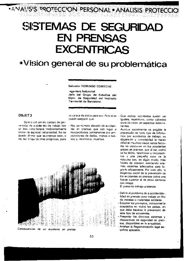 Contribución al estudio de seguridad en el trabajo con prensas excéntricas