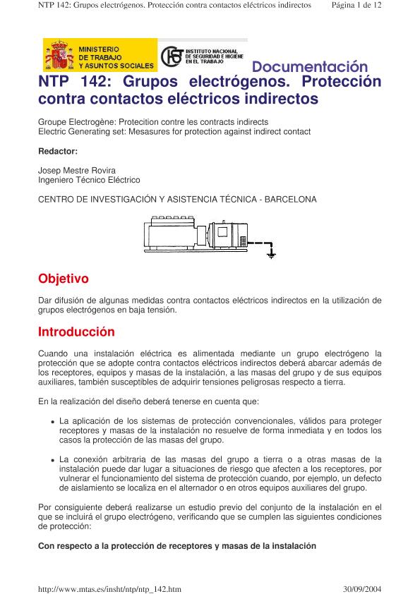 Grupos electrógenos : protección contra contactos eléctricos indirectos