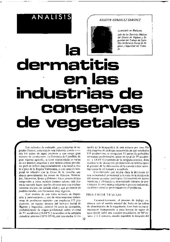 La Dermatitis en las industrias de conservas de vegetales