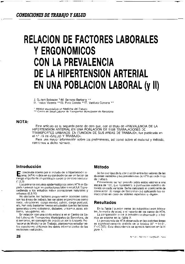 Relación de factores laborales y ergonómicos con la prevalencia de la hipertensión arterial en...