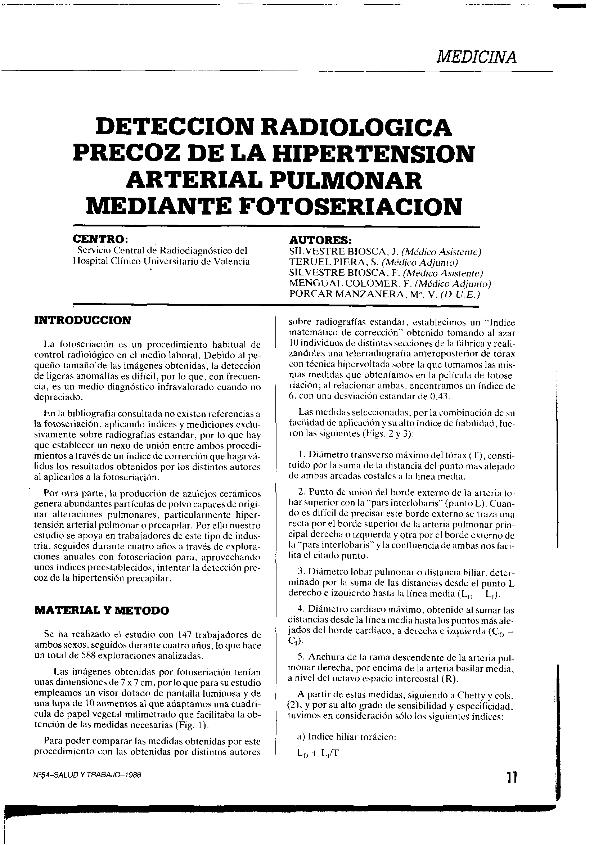 Detección radiológica precoz de la hipertensión arterial pulmonar mediante fotoseriación