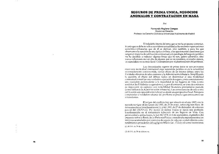 Aspectos jurídicos y fiscales de la nueva regulación del seguro de vida : tributación de "primas...