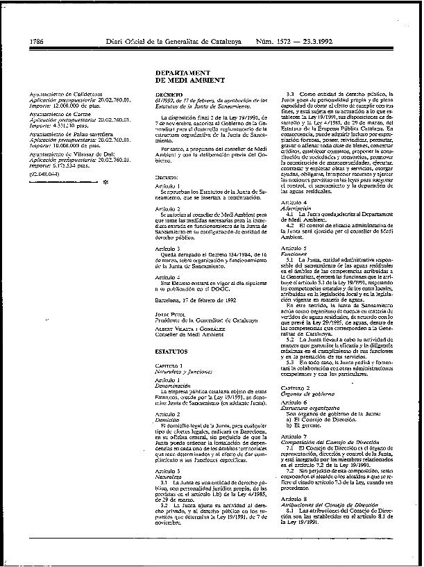 - En: . - D.O.G.C núm. 1572, de 23 de marzo de 1992