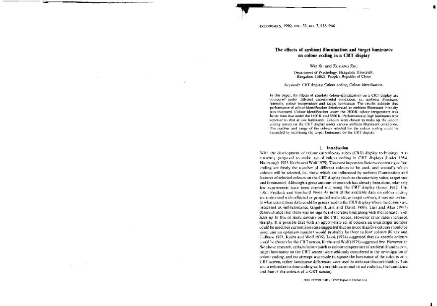 The Effects of ambient illumination and target luminance on colour coding in a CRT display