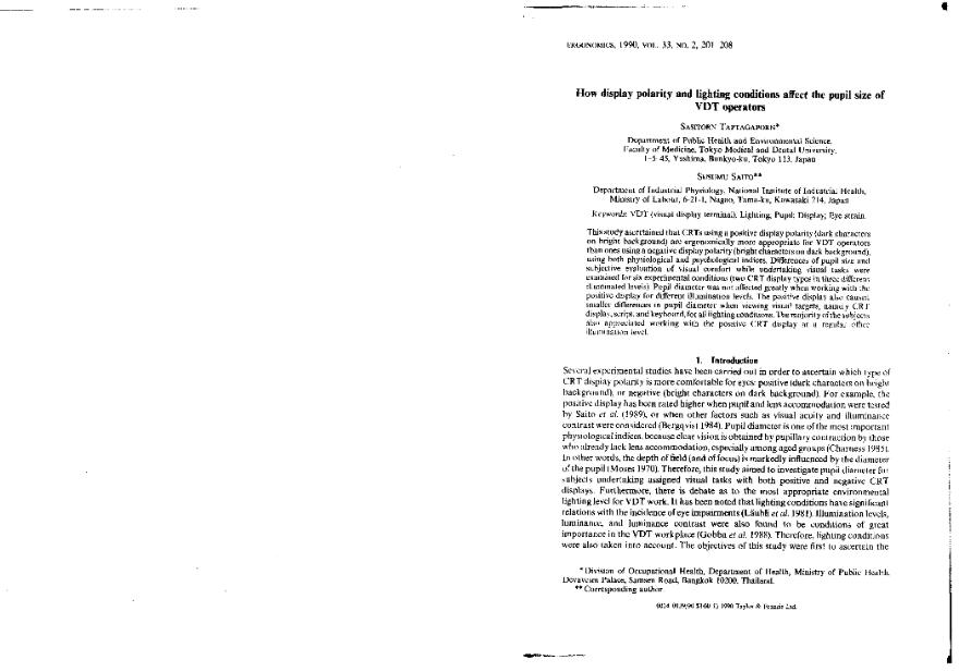 How display polarity and lighting conditions affect the pupil size of VDT operators
