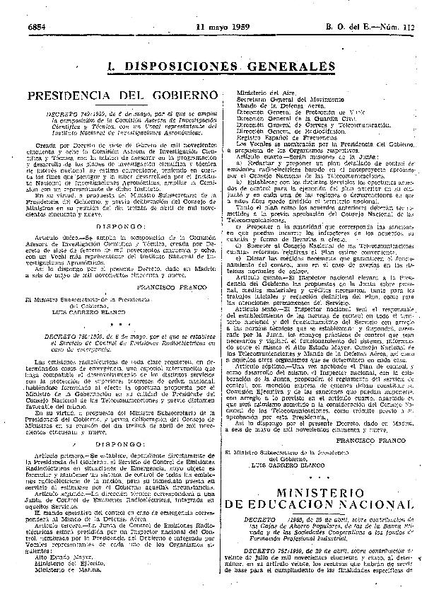 - En: . - B.O.E. núm. 112, de 11 mayo 1959