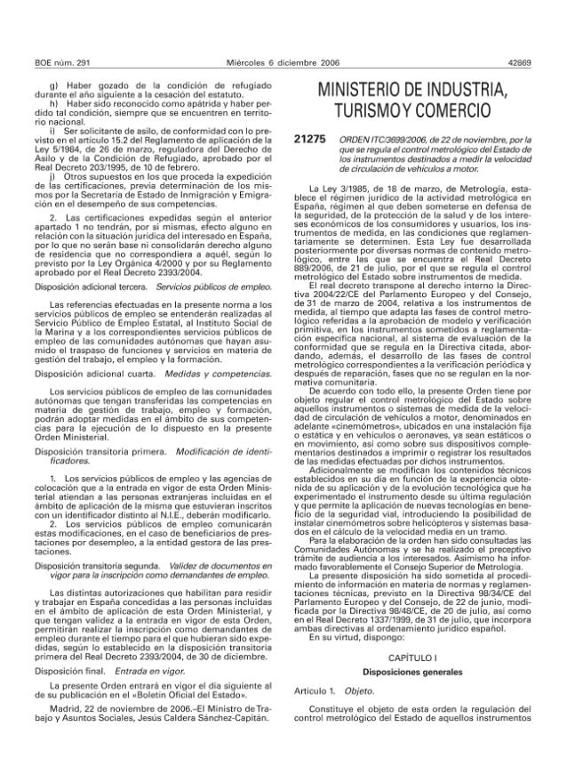 Orden ITC/3699/2006, de 22 de noviembre, por la que se regula el control metrológico del Estado...