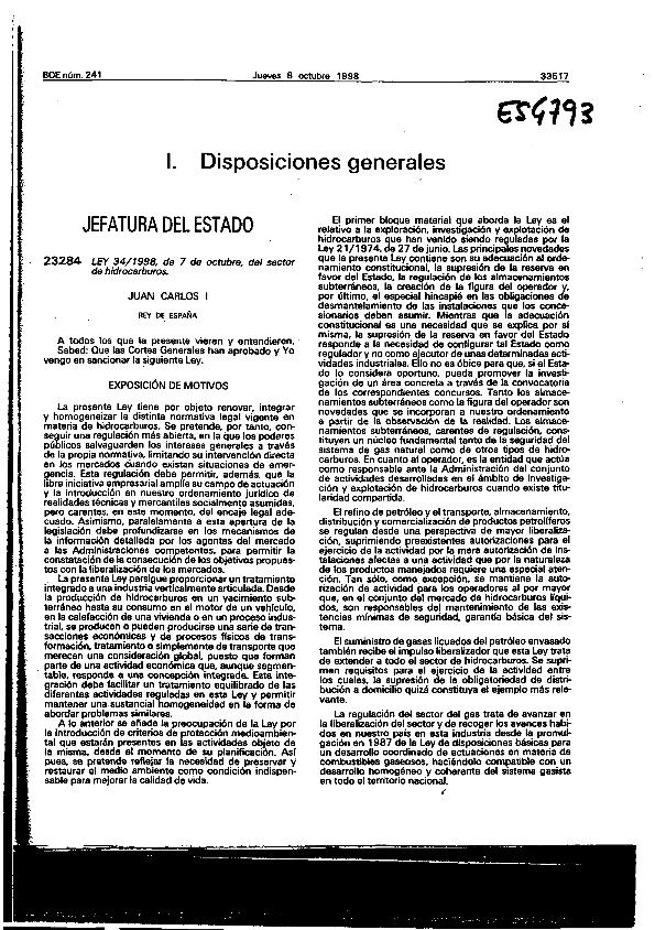Ley 34/1998, de 7 de octubre, del sector de hidrocarburos