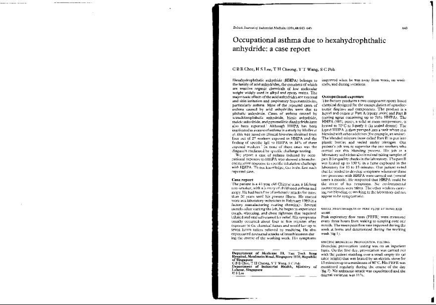 Occupational asthma due to hexahydrophtalic anhydride : a case report