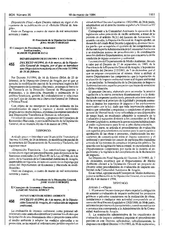 DECRETO 45/1994, de 4 de marzo, de la Diputación General de Aragón, de evaluación de impacto...
