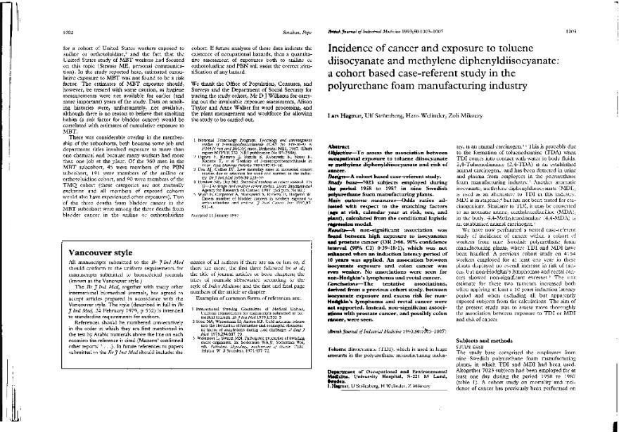 Incidence of cancer and exposure to toluene diisocyanate and methylene diphenyldiisocyanate : a...