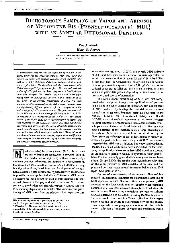 Dichotomous sampling of vapor and aerosol of methylene-bis-(phenylisocyanate) MDI with an annular...