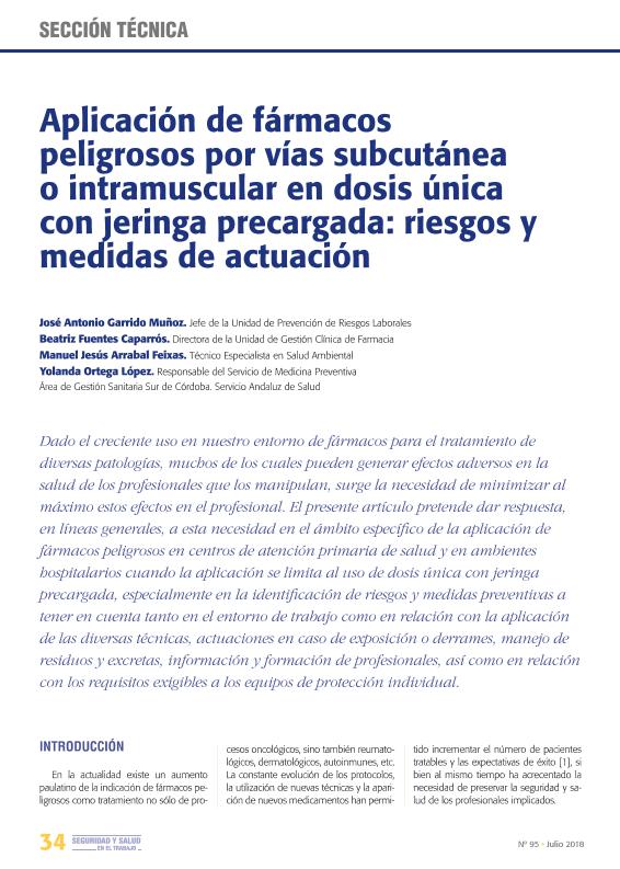 Aplicación de fármacos peligrosos por vías subcutánea o intramuscular en dosis única con jeringa...