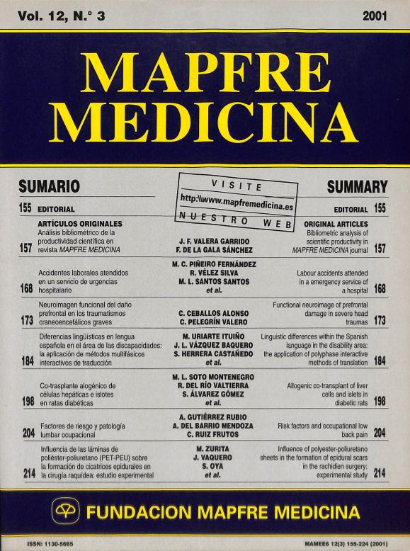 - En: MAPFRE Medicina. - Madrid : Fundación MAPFRE Medicina = ISSN 1130-5665. - 04/07/1994 Tomo 5. Número 3 - 1994 , 43 p.