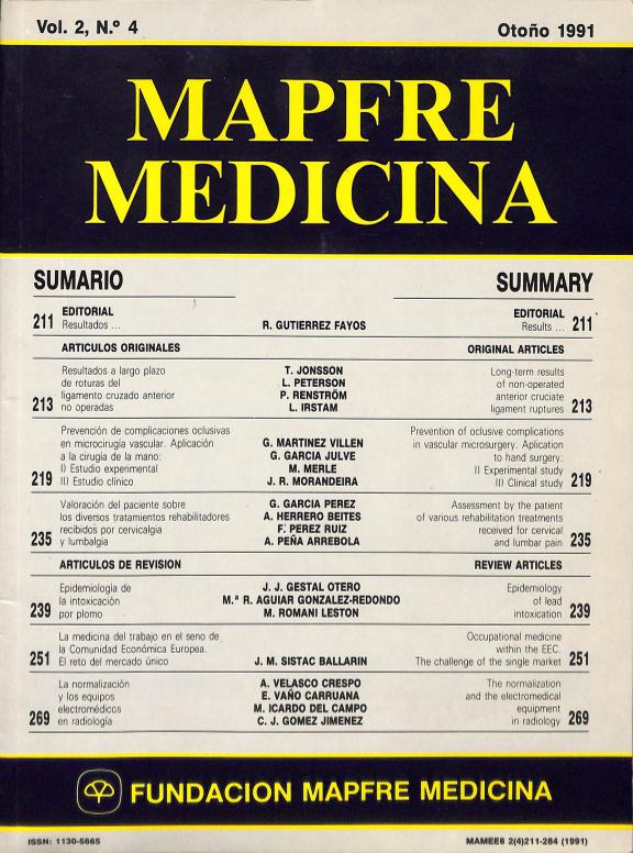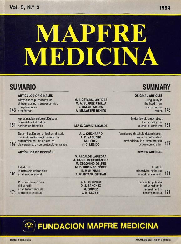 - En: MAPFRE Medicina. - Madrid : Fundación MAPFRE Medicina = ISSN 1130-5665. - 04/04/1994 Tomo 5. Número 2 - 1994 , 43 p.