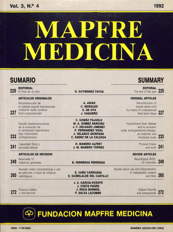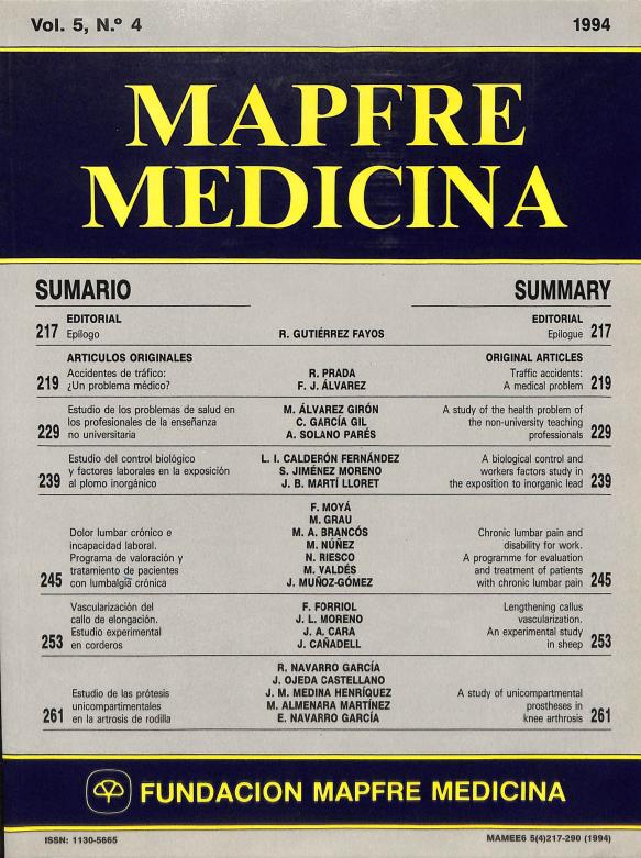 - En: MAPFRE Medicina. - Madrid : Fundación MAPFRE Medicina = ISSN 1130-5665. - 03/10/1994 Tomo 5. Número 4 - 1994 , 43 p.