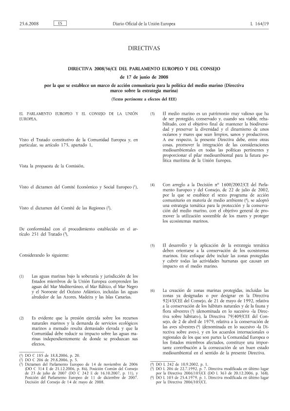 Directiva 2008/56/CE del Parlamento Europeo y del Consejo de 17 de junio de 2008 por la que se...