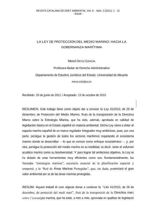 Ley 41/2010, de 29 de diciembre, de protección del medio marino