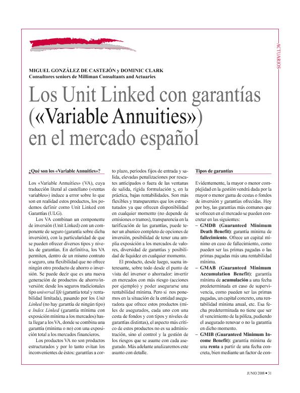 Los Unit linked con garantías (variable annuities) en el mercado español