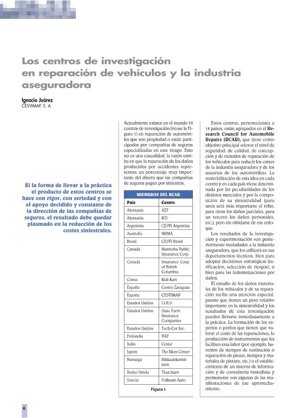 - En: CESVIMAP : revista técnica de reparación y peritación de daños en carrocería y pintura de automóviles. - Madrid : Centro de Experimentación y Seguridad Vial MAPFRE, 1992- = ISSN 1132-7103. - 01/01/1996 Número 15 - enero 1996