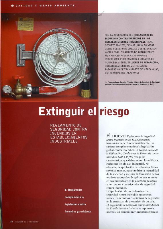 Extinguir el riesgo : nuevo Reglamento de Seguridad contra Incendios en Establecimientos...