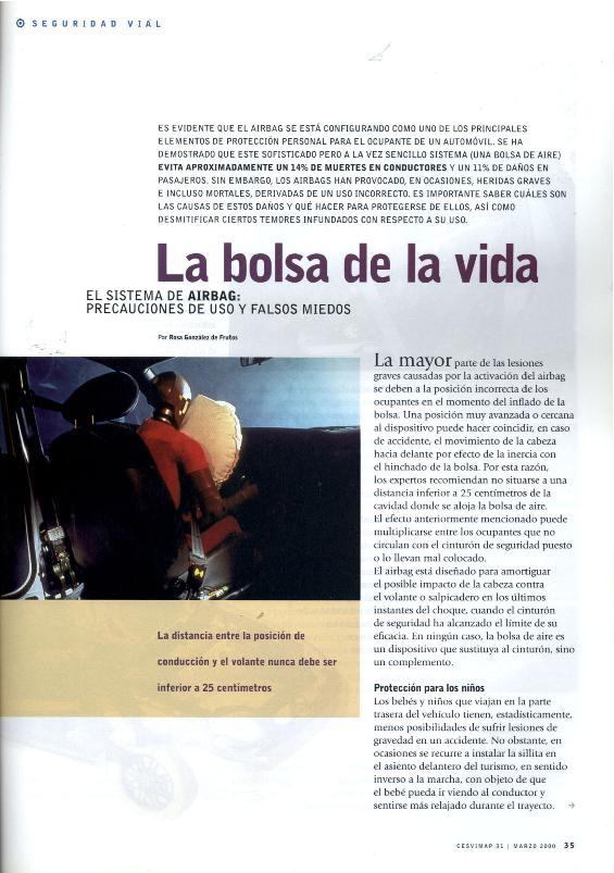 La Bolsa de la vida : El sistema de airbag : precauciones de uso y falsos medios