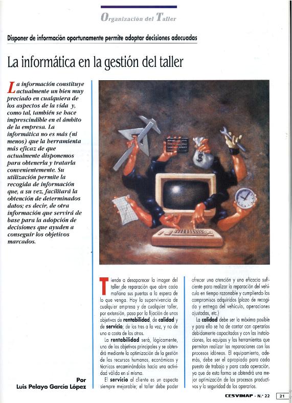 La Informática en la gestión del taller : disponer de información oportunamente permite adoptar...