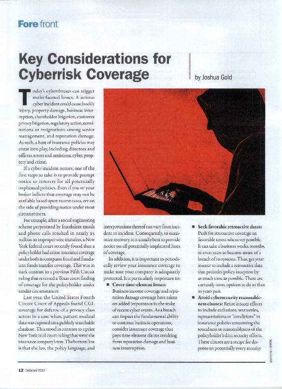 En: Risk Management Magazine. - New York : Risk and Insurance Management Society, 1982- = ISSN 0035-5593. - 02/10/2017 Volumen 64 Número 9 - octubre 2017 , p. 12-13