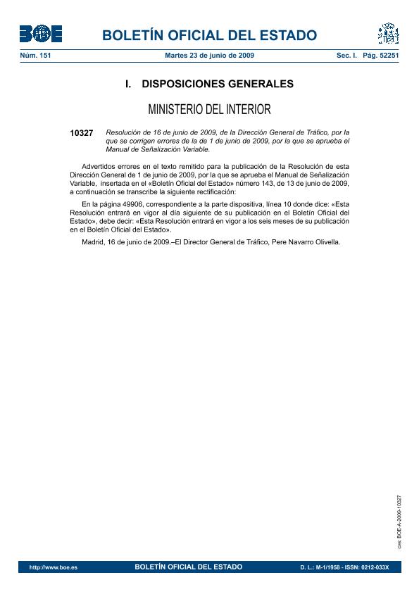 - En: B.O.E. núm. 151, de 23 de junio 2009