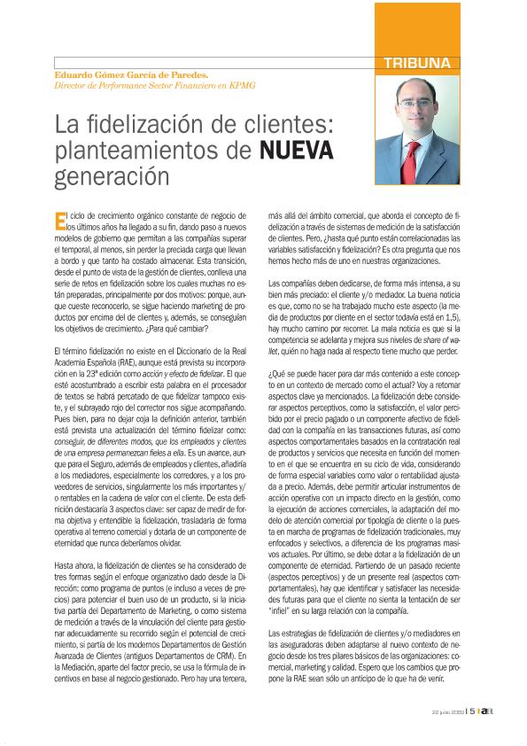 En: Actualidad aseguradora. - Madrid : INESE, 1972- = ISSN 0012-947X. - 30/04/2012 Número 10 - 2012