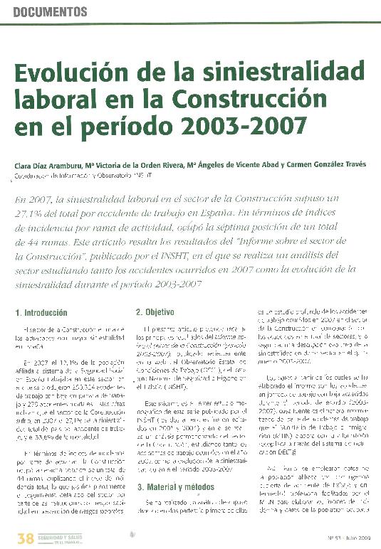 Evolución de la siniestralidad laboral en la construcción en el período 2003-2007