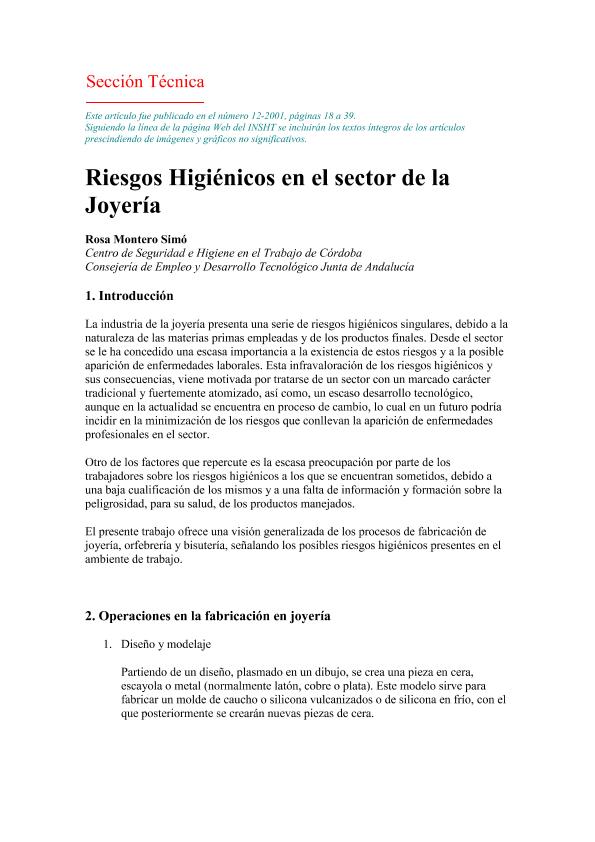 - En: Prevención, trabajo y salud. - Madrid : INSHT. - nº 15, 2001 ; 1 p.