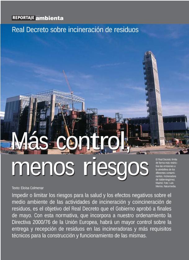 En: Ambienta. - Madrid : Ministerio de Medio Ambiente y Medio Rural y Marino, 2002- = ISSN 1577-9491. - 08/02/2002 Número 15 - Mes Octubre